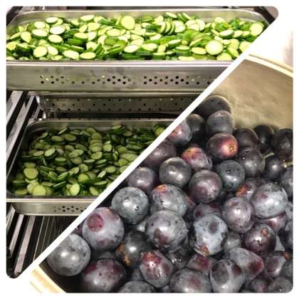 きゅうりは焼き物機で蒸し、熱いうちに調味料につけ、十分味を含ませます。
