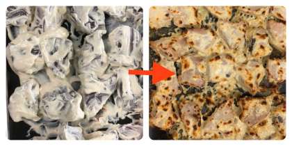 『かつおのマリネ焼き』は、卵アレルギーの児童も食べることができる[ノンエッグドレッシング]を使っています。塩・こしょう・ノンエッグドレッシングで下味をつけたかつおを、焼き物機で焼きます。