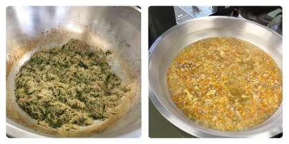 ソテーは、もやしとピーマンをいため、塩・こしょう・うすくちしょうゆで味つけしています。