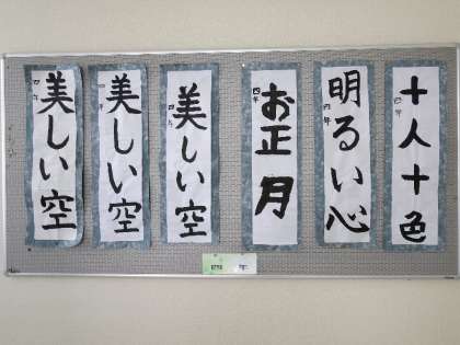 4年生の掲示板には、お正月らしく書写の作品が掲示されています。