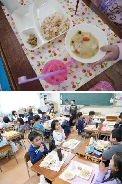 今日の給食の献立は、さけちちらし、ぞうに、やきれんこんでした。お正月にちなんだ季節の献立です。おぞうには、たくさんおもちがはいっていましたね。たくさんのおもちがおいしかったね。