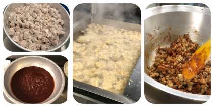 まぐろのオーロラ煮は、しょうが汁で下味をつけたまぐろにでんぷんをまぶしてフライヤーで揚げ、ケチャップ・砂糖・赤みそを合わせたものをからませます。まぐろの脂質には、血液の流れをよくするEPAやDHAが多く含まれています。