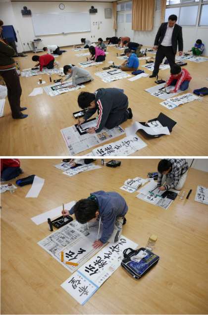6年生が多目的室で習字をしています。なかなかむずかしい字ですね。ゆっくり丁寧に書いていきましょう。