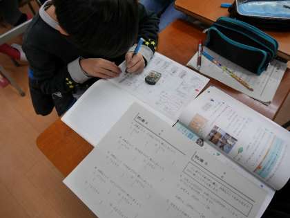 4年算数では、数字を四捨五入してがい数にしています。およその数の大きさがすぐに言えると、話が伝わりやすいですね。