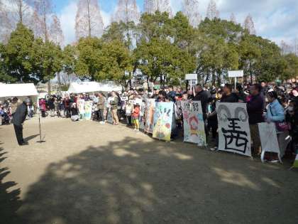新春凧あげ大会!鶴見緑地コミュニティ広場にて
