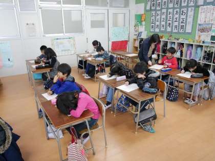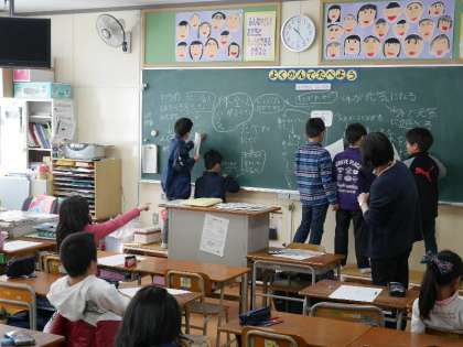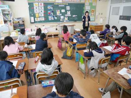 今日は鶴見区の栄養教諭の先生にきていただき栄養指導がありました。テーマは「よくかんで食べよう」です。なかなかゆっくりかんで食べないことが多いのですが、よくかむとどんな良いことがあるのか、みんなで考えて発表をしました。