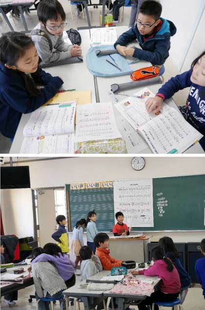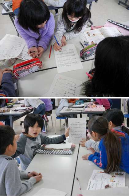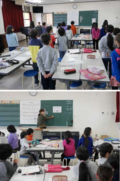 4年生の音楽では、旋律や曲の特徴を感じ取りながら、曲想にふさわしい表現の仕方を考えて発表しました。