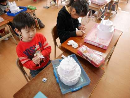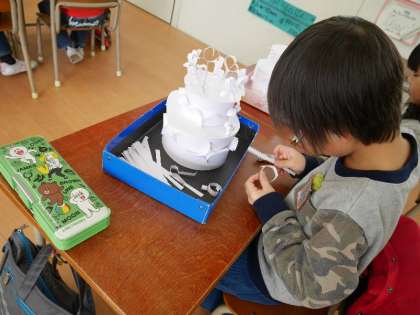 2年生の作品づくり。だんだん細かくなってきたよ。