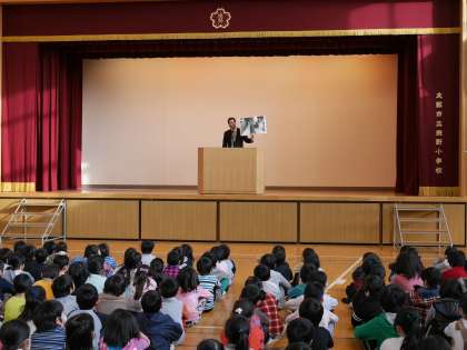 今日の全校朝会では世界初めてのコンピュータのエニアックと2進数のお話をしました。