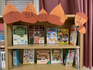 ハロウィンが終わりましたので、図書委員会では、また、新たな本のコーナーを作りました。テーマは「食欲の秋」です。