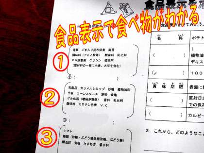 6年生の栄養授業がありました。今日は食品表示について学習しました。食品表示から何の食品かを推測しました。いろいろな食品に表示されている記号や数字などの意味を調べてみました。