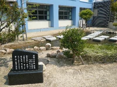 玄関の左側には池があり校歌を刻んだ石碑があります。