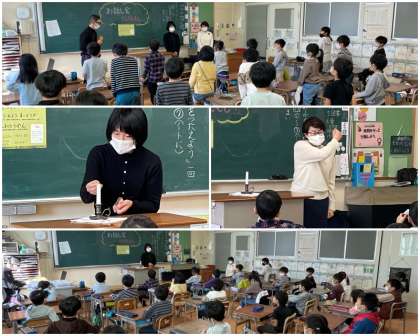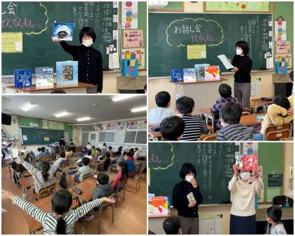 今日12月1日は全校でお話し会を開催しました。各教室に「鶴見おはなしサークルでんでんむし」の皆さんに来ていただいて、お話をしていただきました。