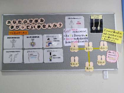 保健室前の掲示板!あなたの背骨まがっていませんか