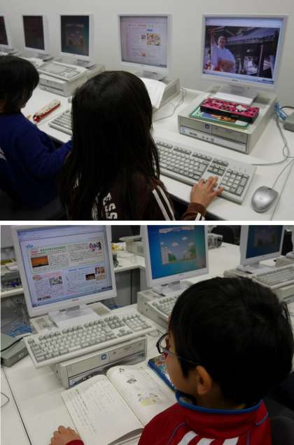 3年生がパソコン室でしらべものをしています。鶴見区役所のホームページや大阪市のホームページも見ています。グリーン鶴見緑地について調べている人もいます。古宮神社の巫女さんの写真もでてきました。節分の豆まきが今日あるそうですね。