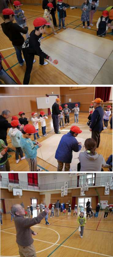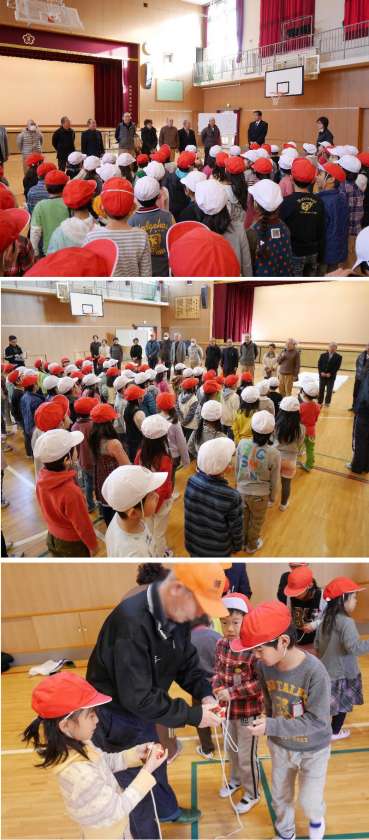 今日は地域のかたがたにたくさん学校にきていただき、1年生がむかしの遊びを教えてもらった楽しみました。コマ回しは少しむずかしかったね。お手玉はとても親切に教えてもらって、お手玉をなげてあそべるようになりました。羽子板が初めての子も楽しそうです。竹とんぼは、コツをおぼえたらよくとびましたね。