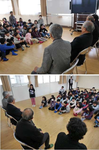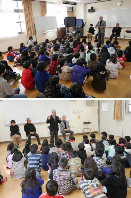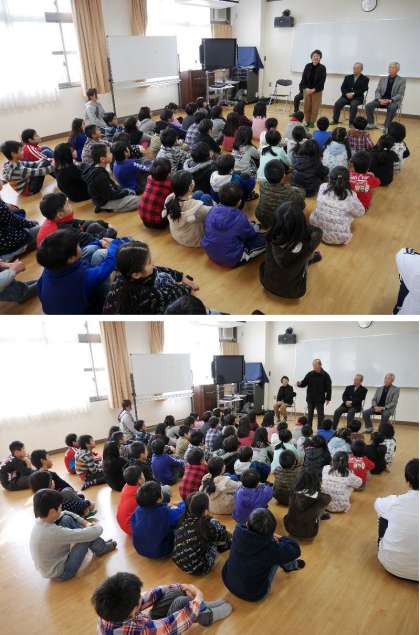 3年生は、地域の老人会の方々にきていただき、昔の生活や遊び、戦争中の暮らしなどのお話をききました。知らないことばかりでしたね。むかしがあるから、今があるんですね。