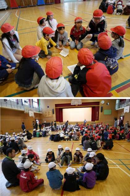 今日の児童集会は、たてわり班あそびの最終打ち合わせをしました。20分休みに運動場、体育館、多目的室をつかって、たてわり班で決めた遊びを楽しみます。