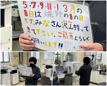 明日8日は「やけのの8の日」です。協力よろしくお願いします。