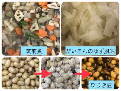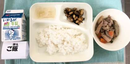 今日の献立は、筑前煮・ひじき豆・だいこんのゆず風味・ごはん・牛乳でした。