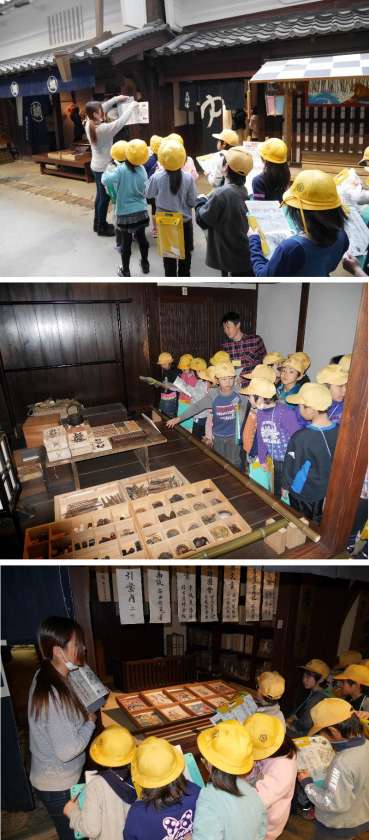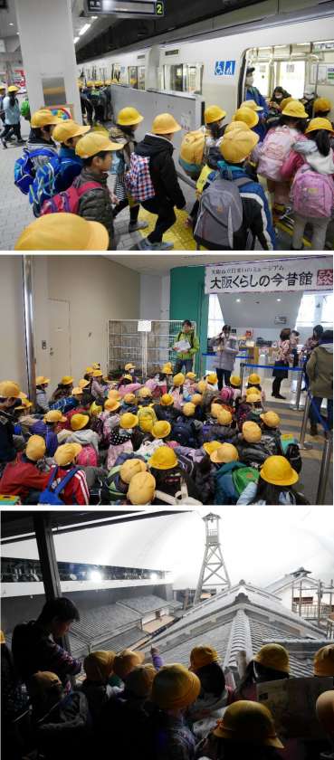 3年生は社会見学で、天神橋6丁目にある大阪くらしの今昔館に地下鉄でいきました。くらしの今昔館にはいると、そこは江戸時代にタイムスリップしたように、江戸時代の街並みが再現されています。夕方や夜になったりもします。とてもわくわくしますね。