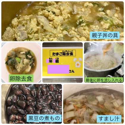 今日の献立は、親子丼・すまし汁・黒豆の煮もの・牛乳でした。