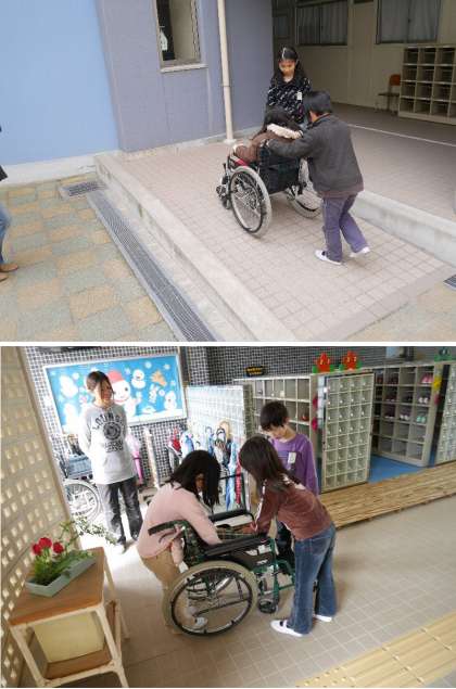 思ったようにまがらないので、車いすの先があたることもありました。だんだん慣れてくるとスムーズにいけました。