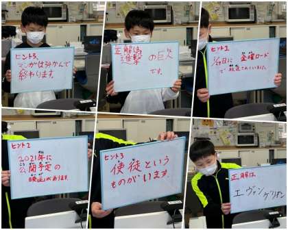 10日の児童集会は、リモートで実施されました。アニメクイズでした。