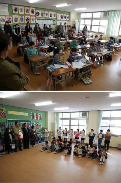 今日は今年度最後の土曜授業でした。授業参観では子どもたちの授業の様子や発表をみていただきました。1年生は、絵と作文による発表などをしていました。たくさんの保護者にきていただき、子どもたちも少し緊張していました。