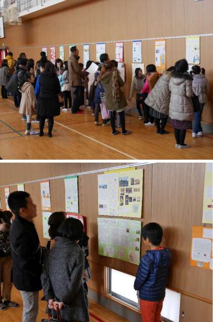 土曜授業の授業参観にたくさんの保護者の方々にきていただき、誠にありがとうございました。4年生は体育館で、班で「大阪自慢」調べ学習して作ったプレゼン用紙をお互いに発表しているところを見ていただきました。5年生は授業で発表をしていました。