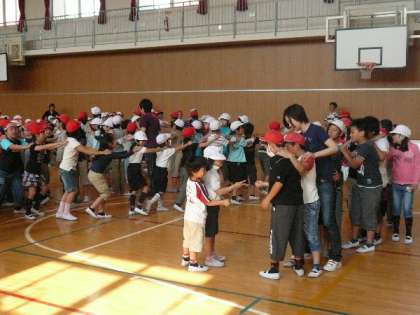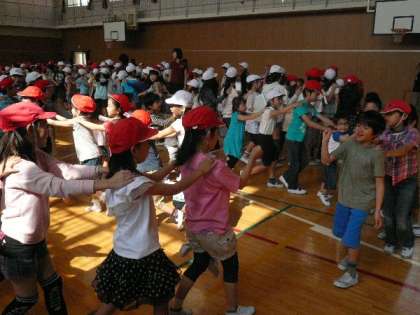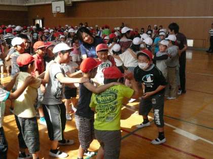 今日の児童集会は「ジャンケン列車」でした。体育館の中を音楽がなり歩きまわります。まず2人でジャンケンして負けた人が勝った人の後ろにつきます。続けていくと長い列が出来上がります。楽しい児童集会でした。
