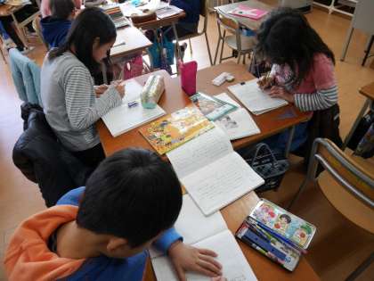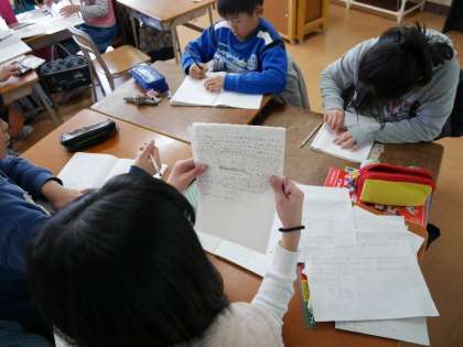 4年生の国語では、「報告します。わたしたちの生活」を学習しています。班ごとにテーマを決めて、クラスでアンケートをとってデータをグラフにしたりまとめて報告できるように整理して文章を考えています。「土曜日の過ごし方」「勉強が好きか」などのアンケートの結果は、とても興味深い内容になっていますね。