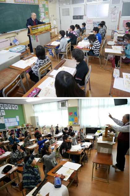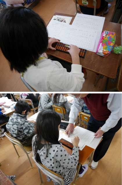 そろばんの使い方を体験!3年生