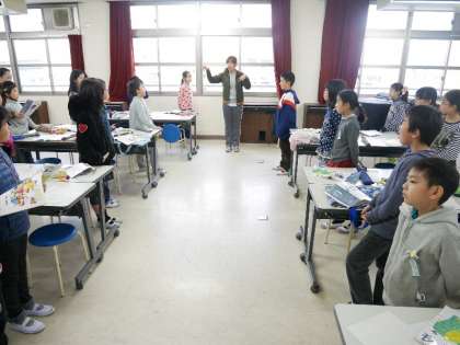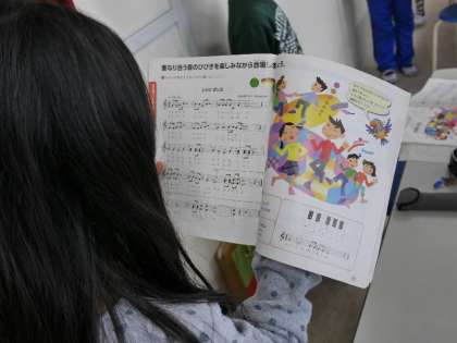 4年生では、ふたつのパートにわかれて合唱の練習をしていました。重なりあう音のひびきを楽しみながらしっかりと歌えましたか。自分の合唱をしっかり歌いながら、相手の音も聞くのは少しむずかしいですね。