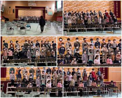 12日、一年生はこの間練習してきた「入学のお祝い」のビデオの本番撮影を行いました。