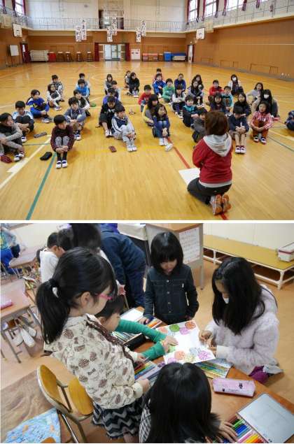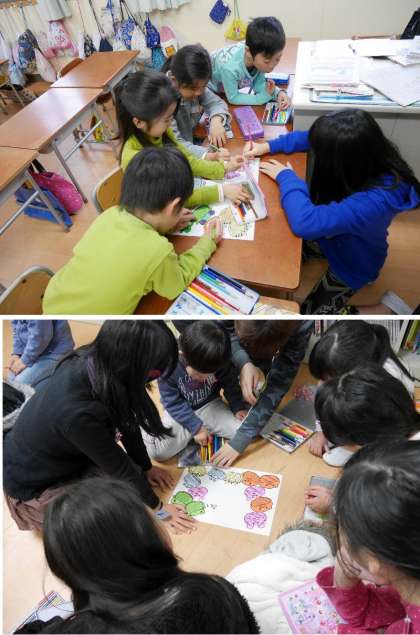 今日の集会はなしで、教室でたてわり班が集まって卒業メッセージカードを完成させました。6年生は講堂で待機です。
