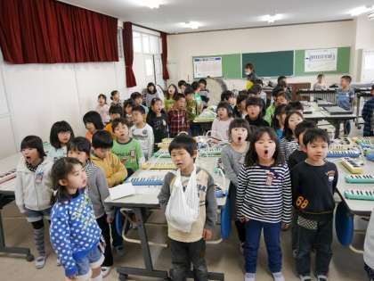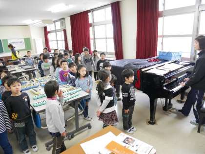 1年生の歌の練習が始まりました。新1年生をむかえる入学式のための練習です。校歌をしっかり歌っています。
