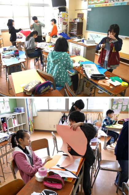6年生が卒業前の茶話会をおこないます。その茶話会への招待状をつくっています。先生たちを招待してくれるようです。楽しみですね。