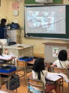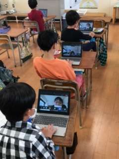 学級によっては、教室にいる子ども達も端末を開いての接続を試みました。