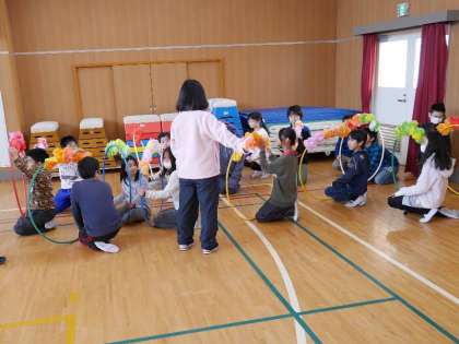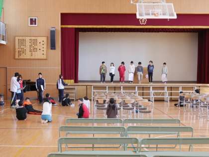 5年生が20分休みに体育館で卒業お祝いの会の練習をおこなっていました。