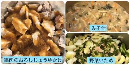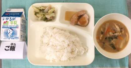 今日の献立は、鶏肉のおろしじょうゆかけ・みそ汁・野菜いため・ごはん・牛乳でした。