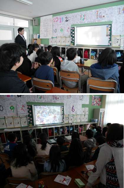 プレゼンターの二人目は校長先生でした。校長先生が焼野小開校当時の2年生のときから6年生までの写真をビデオに編集して音楽をつけました。その15分のビデオをみていただきました。「かわいい!」と幼かったあの日の写真を懐かしく見ました。大きく成長してきましたね。
