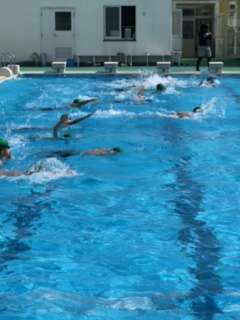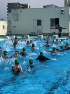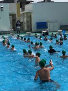 水慣れで水中エアロビクスをしたり、手の動きに気をつけながらクロールで泳いだりしました。天気が良く、絶好のプール日和でした。