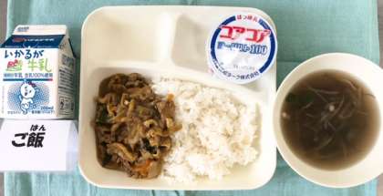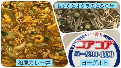 今日の献立は、和風カレー丼・もずくとオクラのとろり汁・ヨーグルト・牛乳でした。