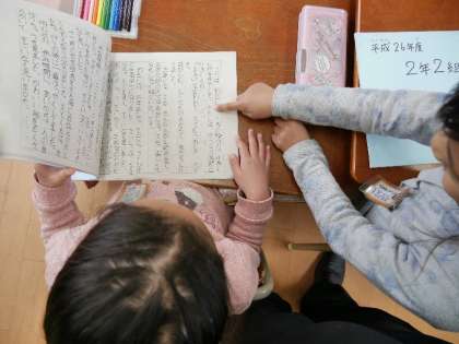 2年生で文集をとじていました。しっかり1年間の成長がまとめられていますね。大切にしまっておいてくださいね。
