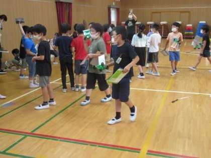 今日は理科の「風やゴムのはたらき」の実験をしました。下敷きで一生懸命風を送り、ヨットカーを走らせました。