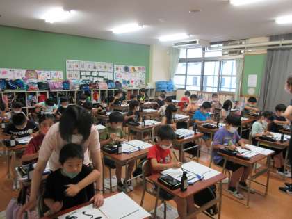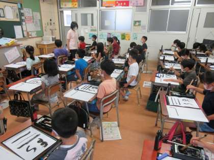 6時間目には、習字をしました。3年生の授業では初めての習字なので、少し緊張しながらも、楽しく書くことができました。