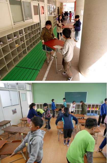 机とイスの大移動・・・4年と5年が準備