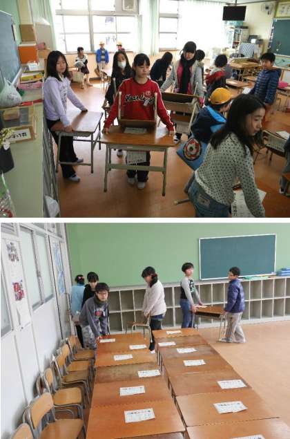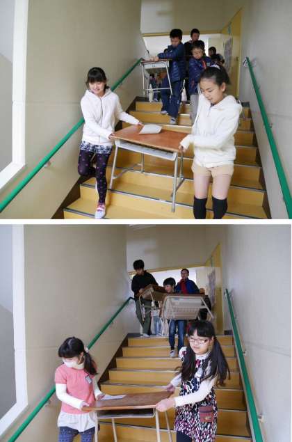4月からのスタートの準備のため、4年生と5年生が、教室の机とイスの移動を手伝ってくれました。階をさがったり、エレベータであげたりとがんばっていました。