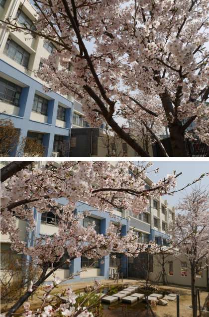 4月1日。校庭の桜は満開です。新しい年度がスタートしました。焼野小学校は開校6年目を迎えます。